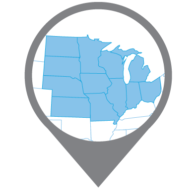 States: Illinois, Indiana, Iowa, Kansas, Michigan, Minnesota, Missouri, Nebraska, North Dakota, Ohio, South Dakota and Wisconsin